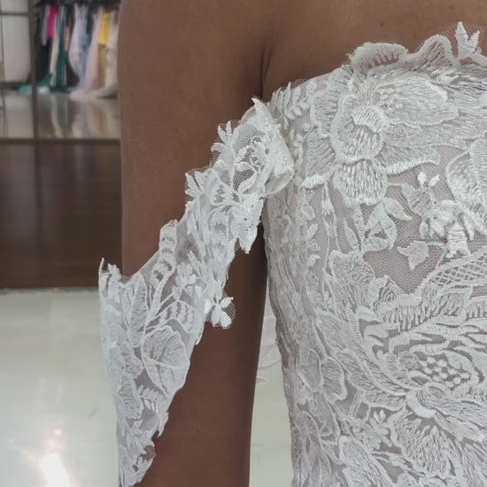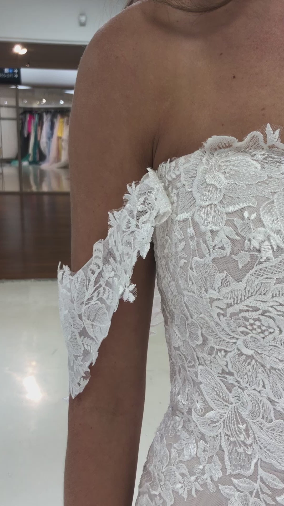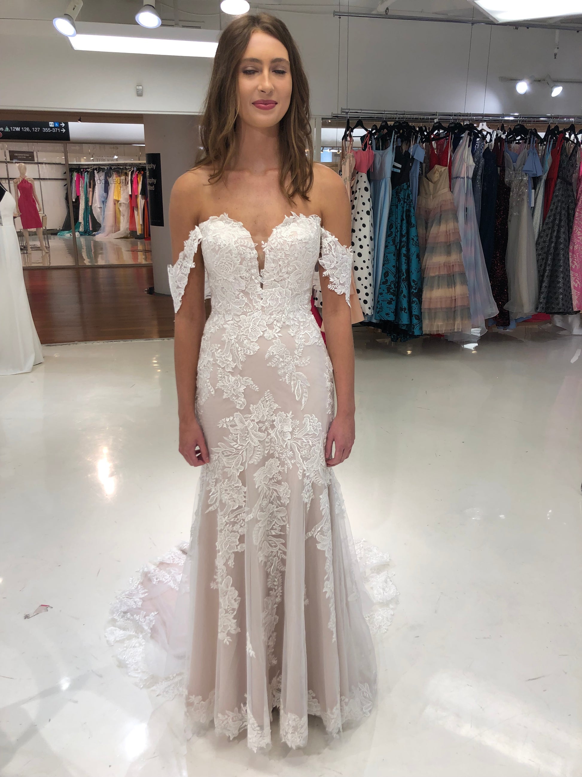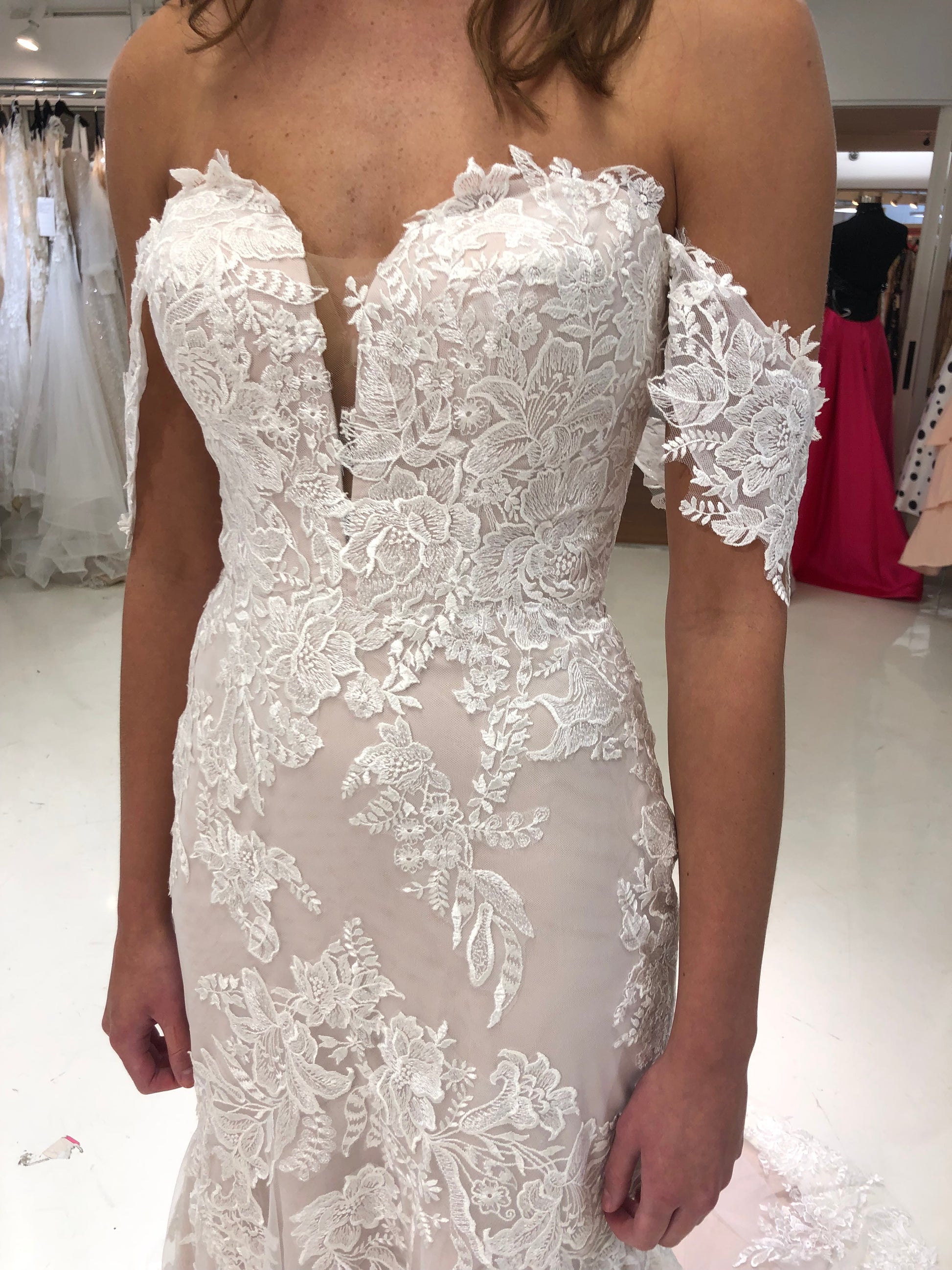 All gowns are authentic designer and private label gowns. While we do our best to take good care for our sample gowns, please note that normal wear & tear is expected. These are in-store samples that have been tried on in-store by brides, but have never been used, worn or altered in any way. Minor fixes and/or cleaning may be expected, however, any major damage will be explicitly stated in the item’s description. If you have any questions prior to purchasing, please reach out to us directly.