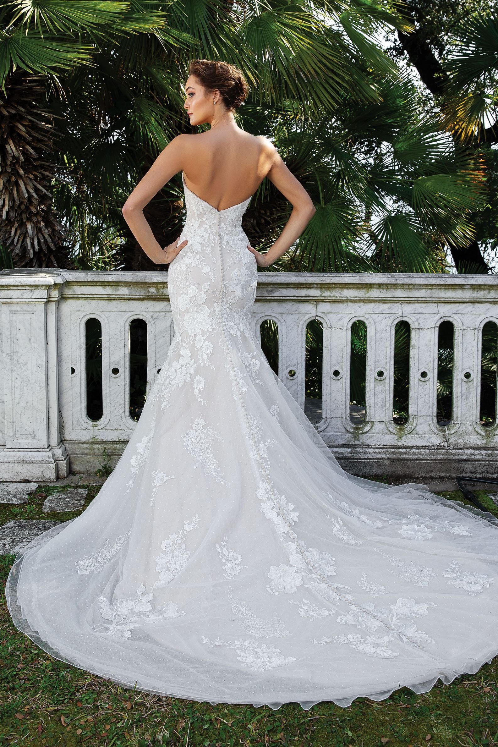 Please note that bridal sizes run small. Your bridal size will usually be several sizes larger than your typical street size, depending on the designer. Please measure yourself and compare it to the designer’s size chart before placing an order. If you are in between sizes, always size up, as you can typically alter a wedding gown 1-2 sizes down in alterations without any structural changes to the gown. Just like any formalwear, alterations are typically necessary for the dress to fit like a glove.