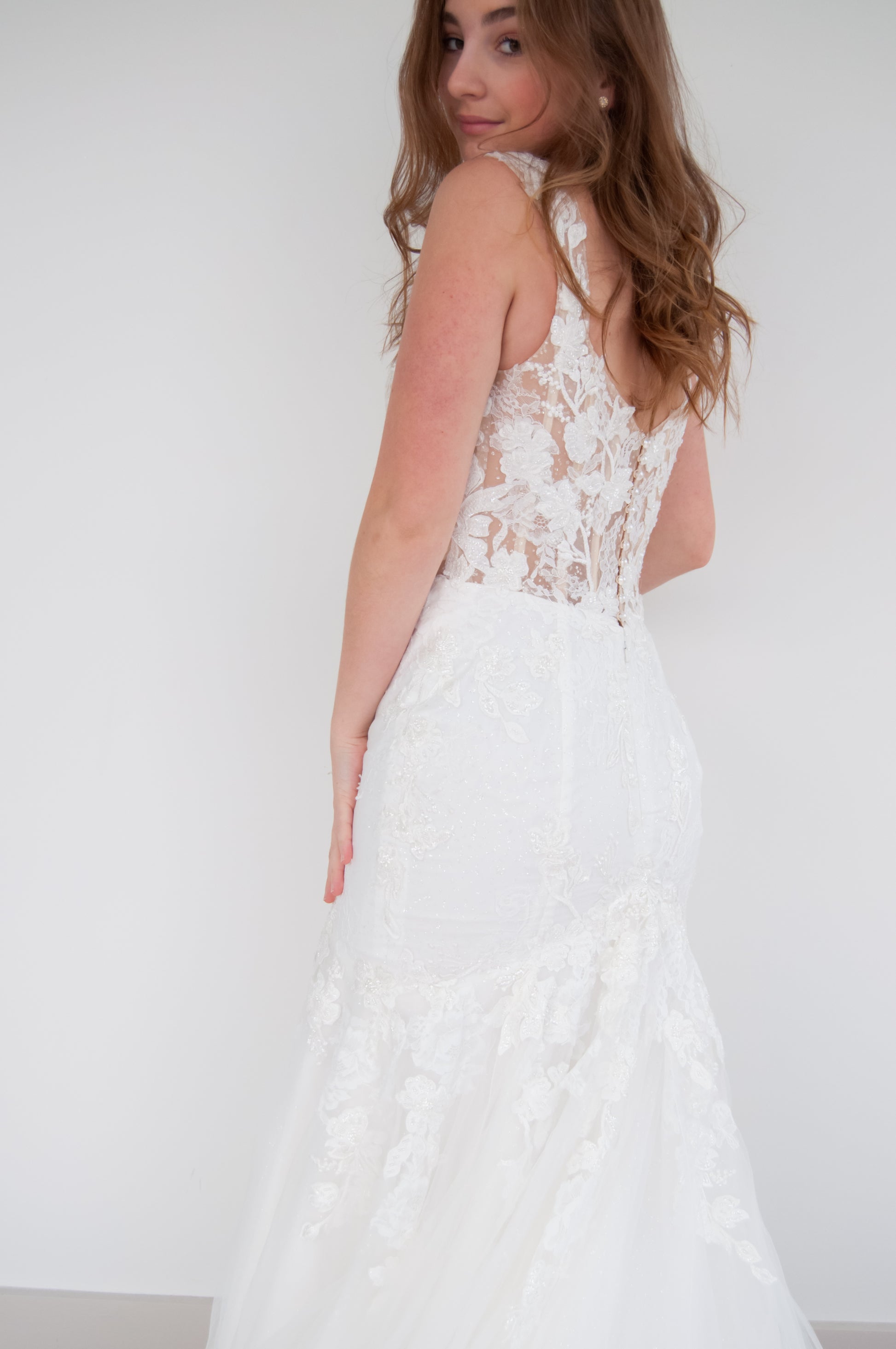 All gowns are authentic designer and private label gowns. While we do our best to take good care for our sample gowns, please note that normal wear & tear is expected. These are in-store samples that have been tried on in-store by brides, but have never been used, worn or altered in any way. Minor fixes and/or cleaning may be expected, however, any major damage will be explicitly stated in the item’s description. If you have any questions prior to purchasing, please reach out to us directly.