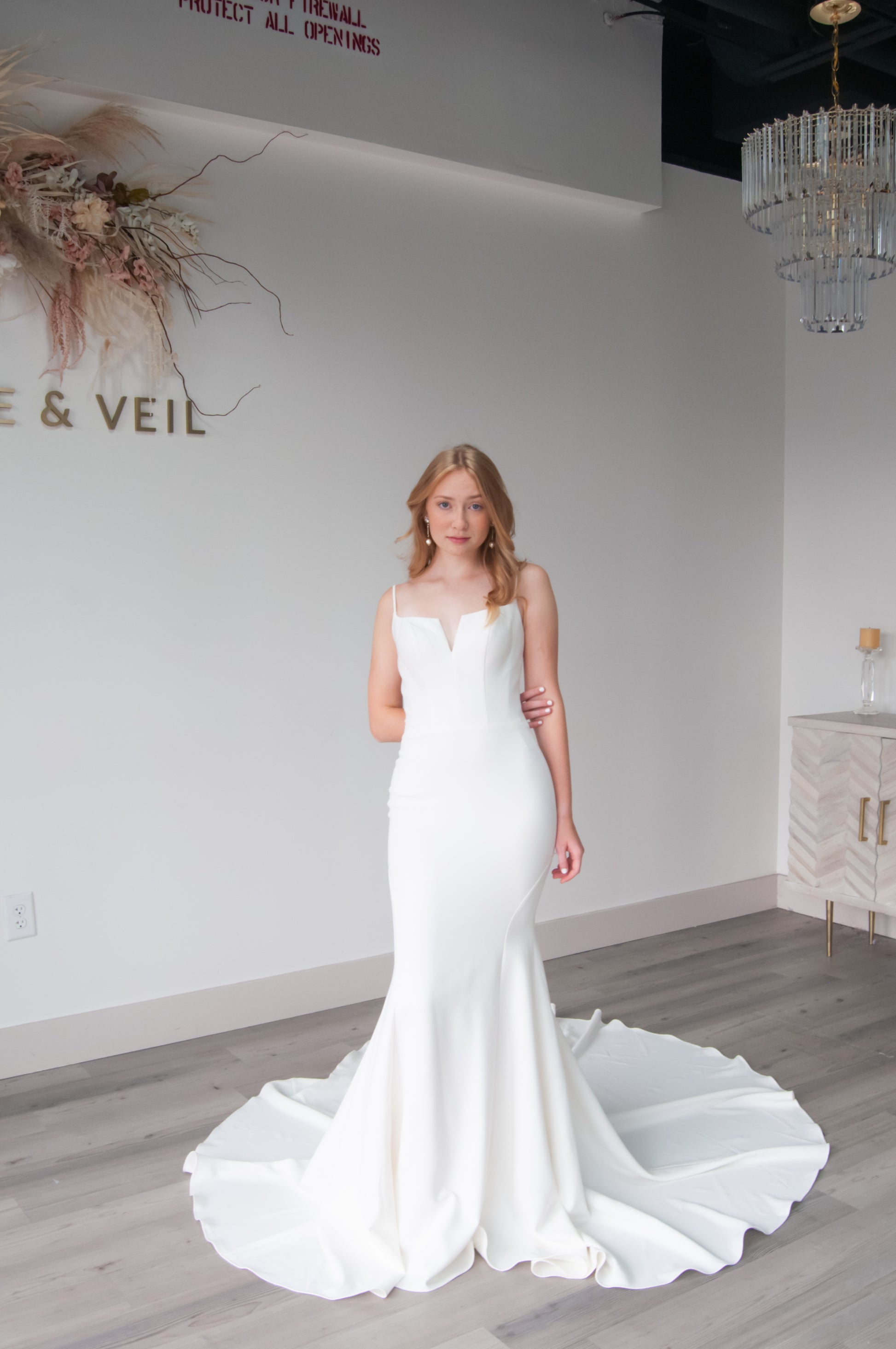 Please note that bridal sizes run small. Your bridal size will usually be several sizes larger than your typical street size, depending on the designer. Please measure yourself and compare it to the designer’s size chart before placing an order. If you are in between sizes, always size up, as you can typically alter a wedding gown 1-2 sizes down in alterations without any structural changes to the gown. Just like any formalwear, alterations are typically necessary for the dress to fit like a glove.