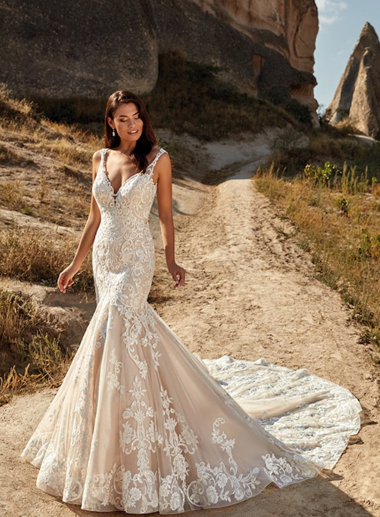 Please note that bridal sizes run small. Your bridal size will usually be several sizes larger than your typical street size, depending on the designer. Please measure yourself and compare it to the designer’s size chart before placing an order. If you are in between sizes, always size up, as you can typically alter a wedding gown 1-2 sizes down in alterations without any structural changes to the gown. Just like any formalwear, alterations are typically necessary for the dress to fit like a glove.