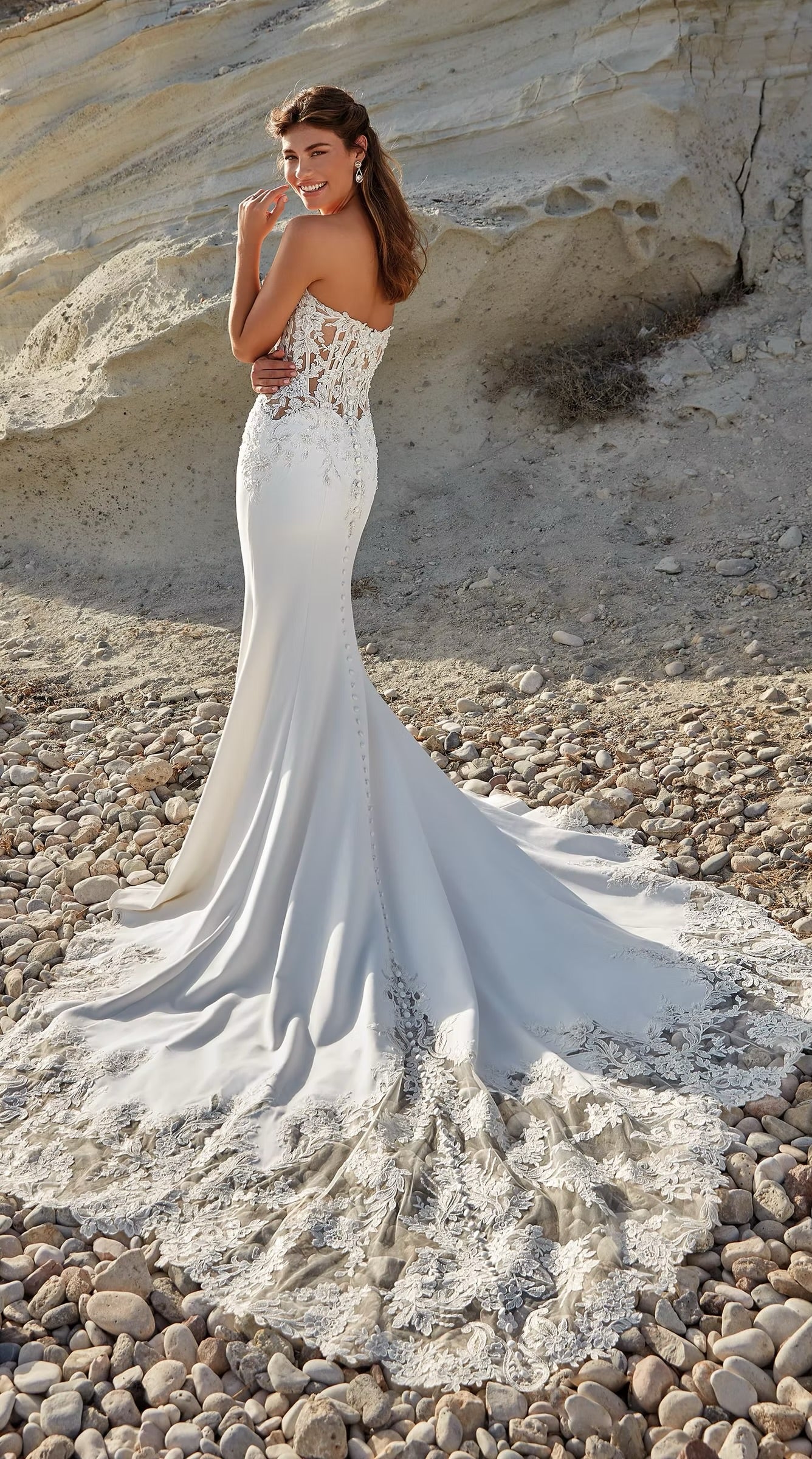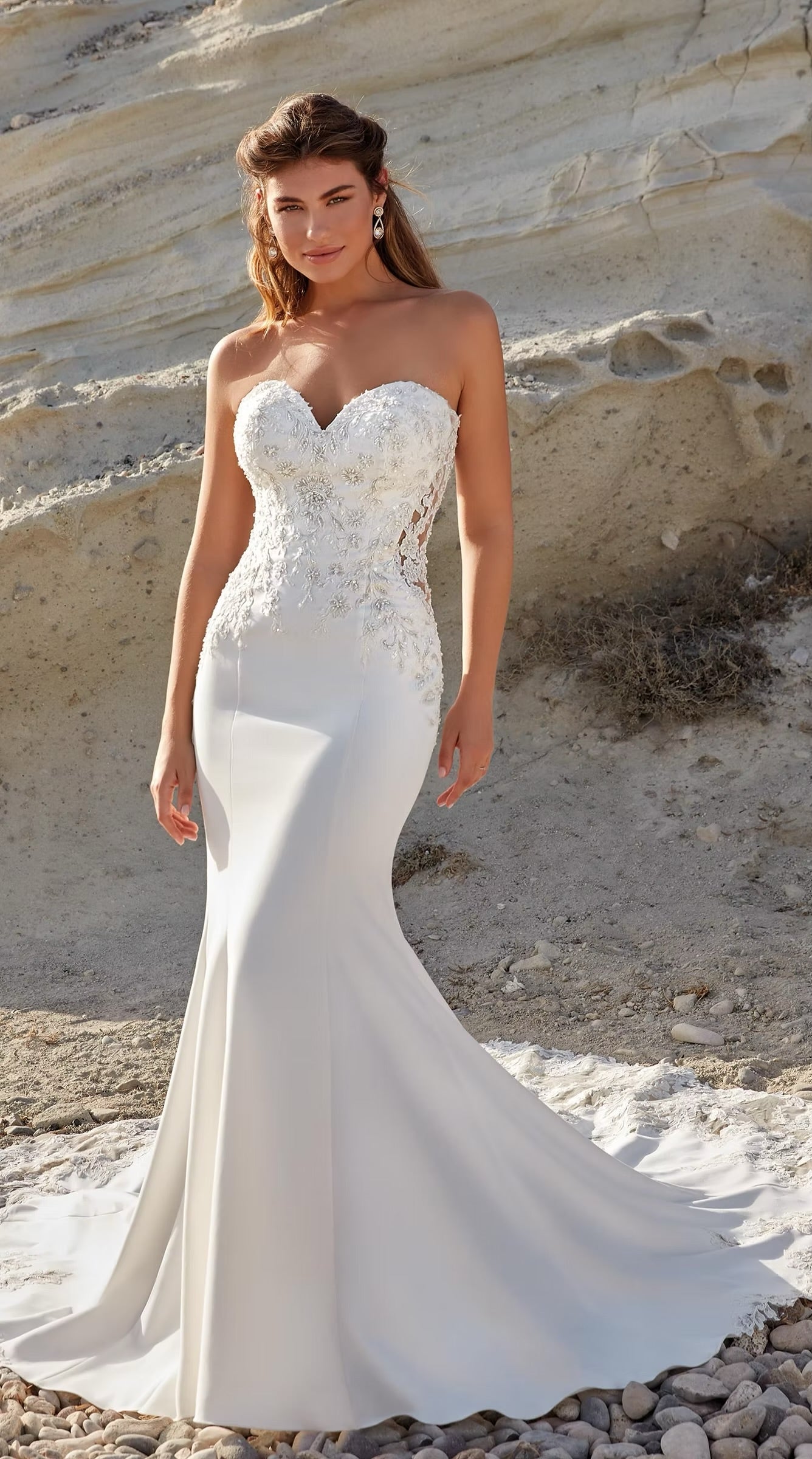 Please note that bridal sizes run small. Your bridal size will usually be several sizes larger than your typical street size, depending on the designer. Please measure yourself and compare it to the designer’s size chart before placing an order. If you are in between sizes, always size up, as you can typically alter a wedding gown 1-2 sizes down in alterations without any structural changes to the gown. Just like any formalwear, alterations are typically necessary for the dress to fit like a glove.