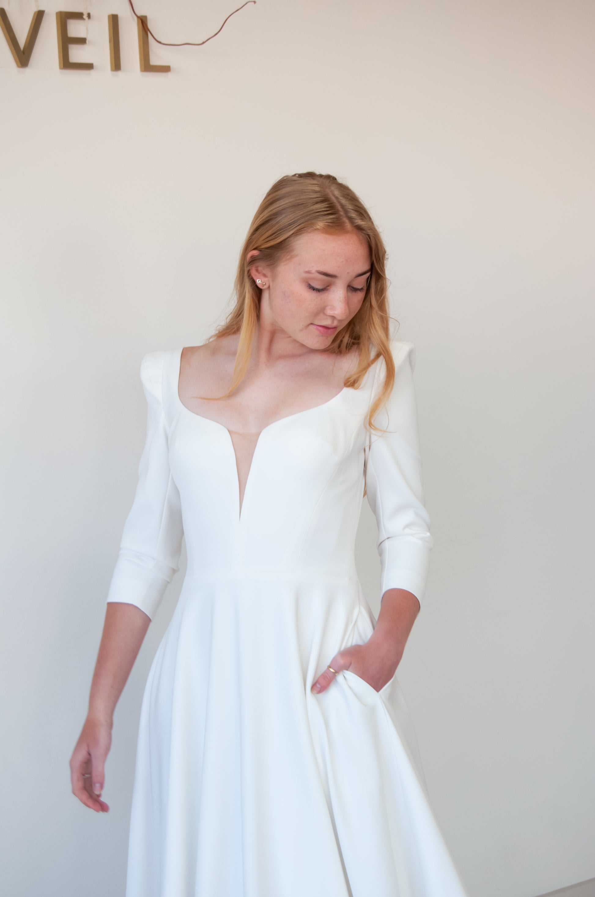 All gowns are authentic designer and private label gowns. While we do our best to take good care for our sample gowns, please note that normal wear & tear is expected. These are in-store samples that have been tried on in-store by brides, but have never been used, worn or altered in any way. Minor fixes and/or cleaning may be expected, however, any major damage will be explicitly stated in the item’s description. If you have any questions prior to purchasing, please reach out to us directly.