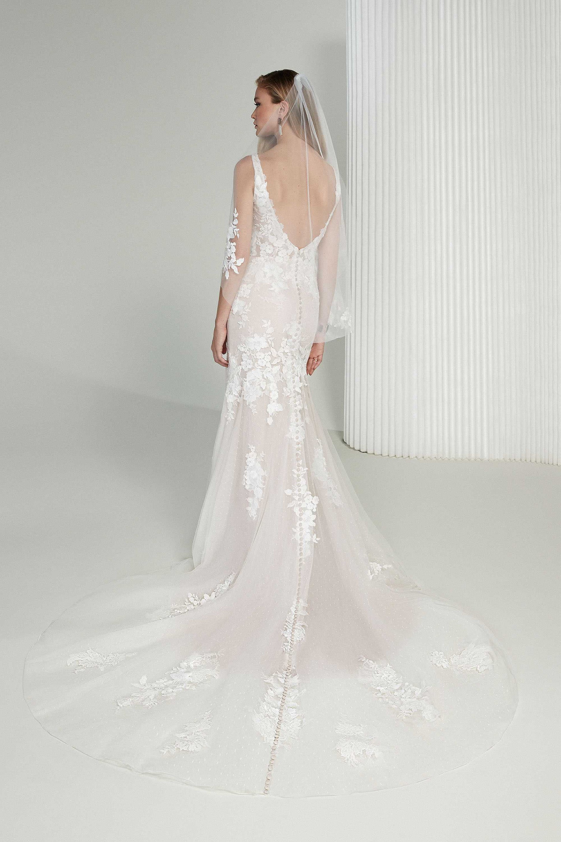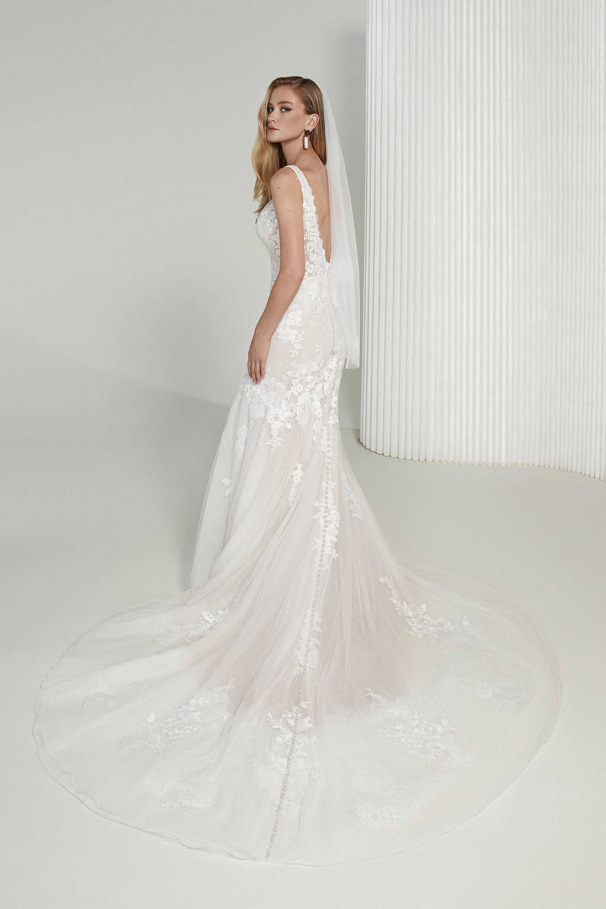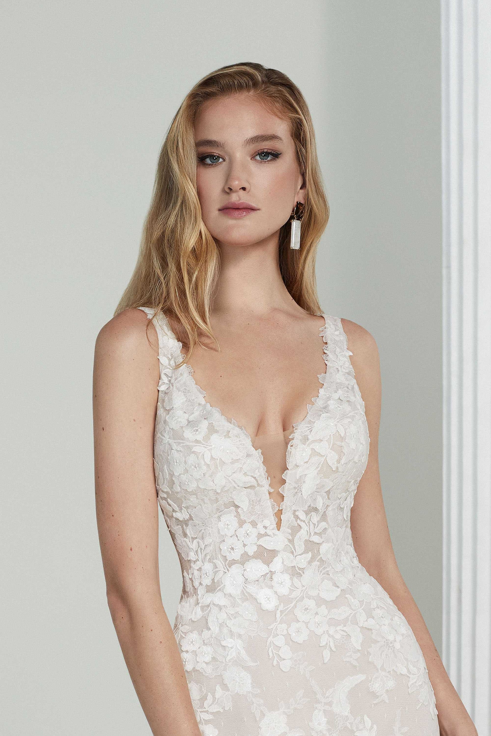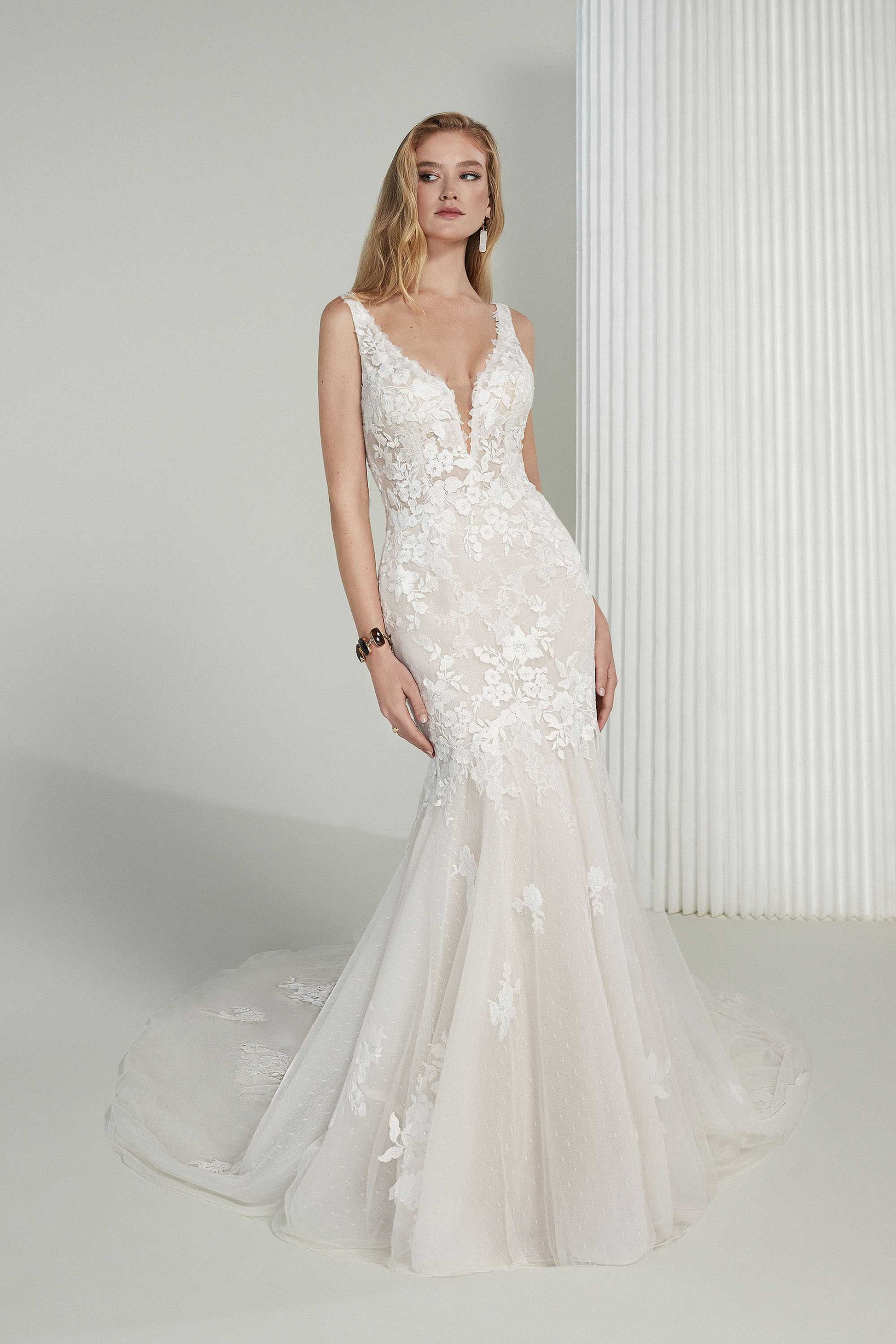 Please note that bridal sizes run small. Your bridal size will usually be several sizes larger than your typical street size, depending on the designer. Please measure yourself and compare it to the designer’s size chart before placing an order. If you are in between sizes, always size up, as you can typically alter a wedding gown 1-2 sizes down in alterations without any structural changes to the gown. Just like any formalwear, alterations are typically necessary for the dress to fit like a glove.