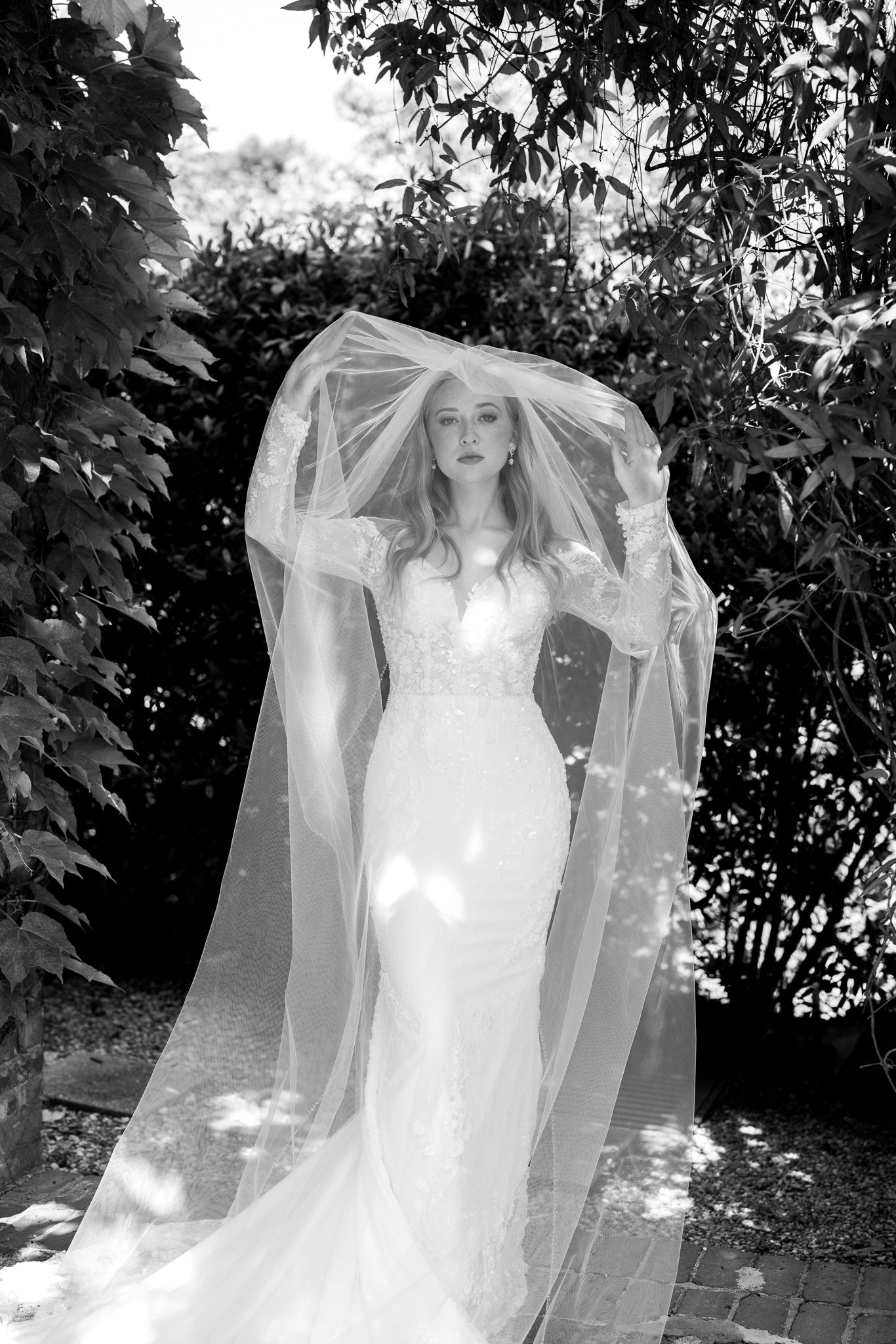 Please note that bridal sizes run small. Your bridal size will usually be several sizes larger than your typical street size, depending on the designer. Please measure yourself and compare it to the designer’s size chart before placing an order. If you are in between sizes, always size up, as you can typically alter a wedding gown 1-2 sizes down in alterations without any structural changes to the gown. Just like any formalwear, alterations are typically necessary for the dress to fit like a glove.