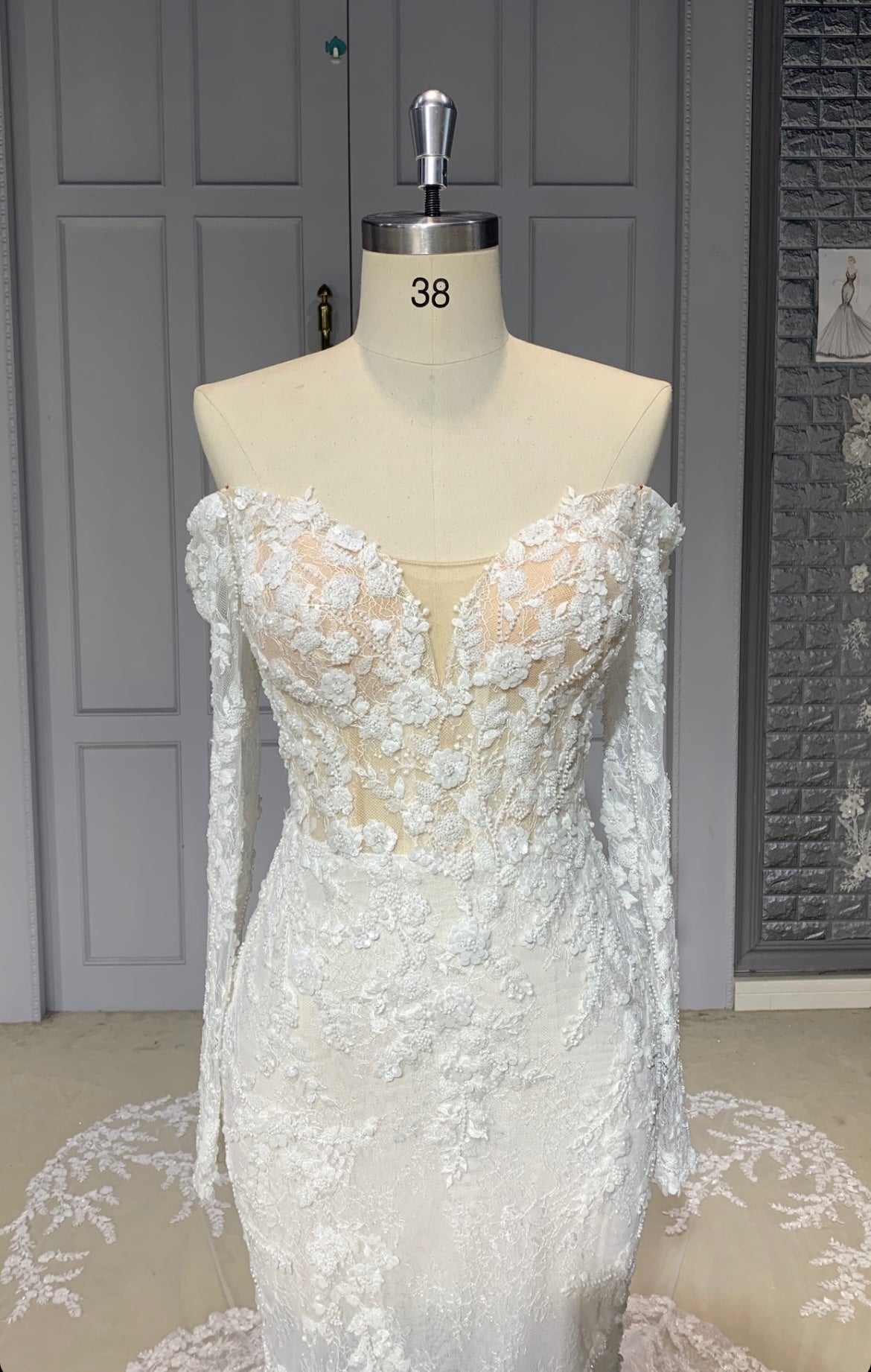 All gowns are authentic designer and private label gowns. While we do our best to take good care for our sample gowns, please note that normal wear & tear is expected. These are in-store samples that have been tried on in-store by brides, but have never been used, worn or altered in any way. Minor fixes and/or cleaning may be expected, however, any major damage will be explicitly stated in the item’s description. If you have any questions prior to purchasing, please reach out to us directly.