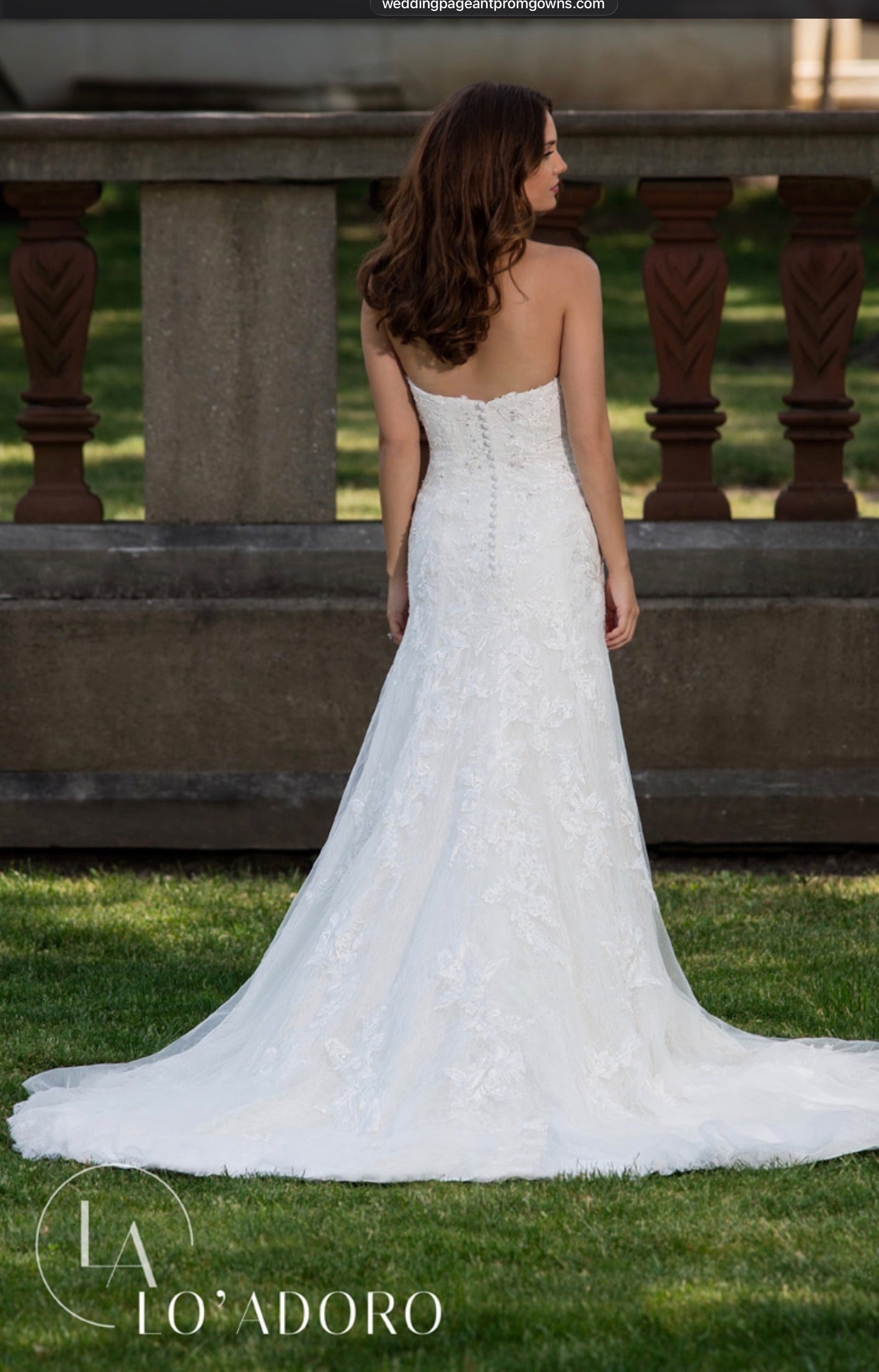 All gowns are authentic designer and private label gowns. While we do our best to take good care for our sample gowns, please note that normal wear & tear is expected. These are in-store samples that have been tried on in-store by brides, but have never been used, worn or altered in any way. Minor fixes and/or cleaning may be expected, however, any major damage will be explicitly stated in the item’s description. If you have any questions prior to purchasing, please reach out to us directly.