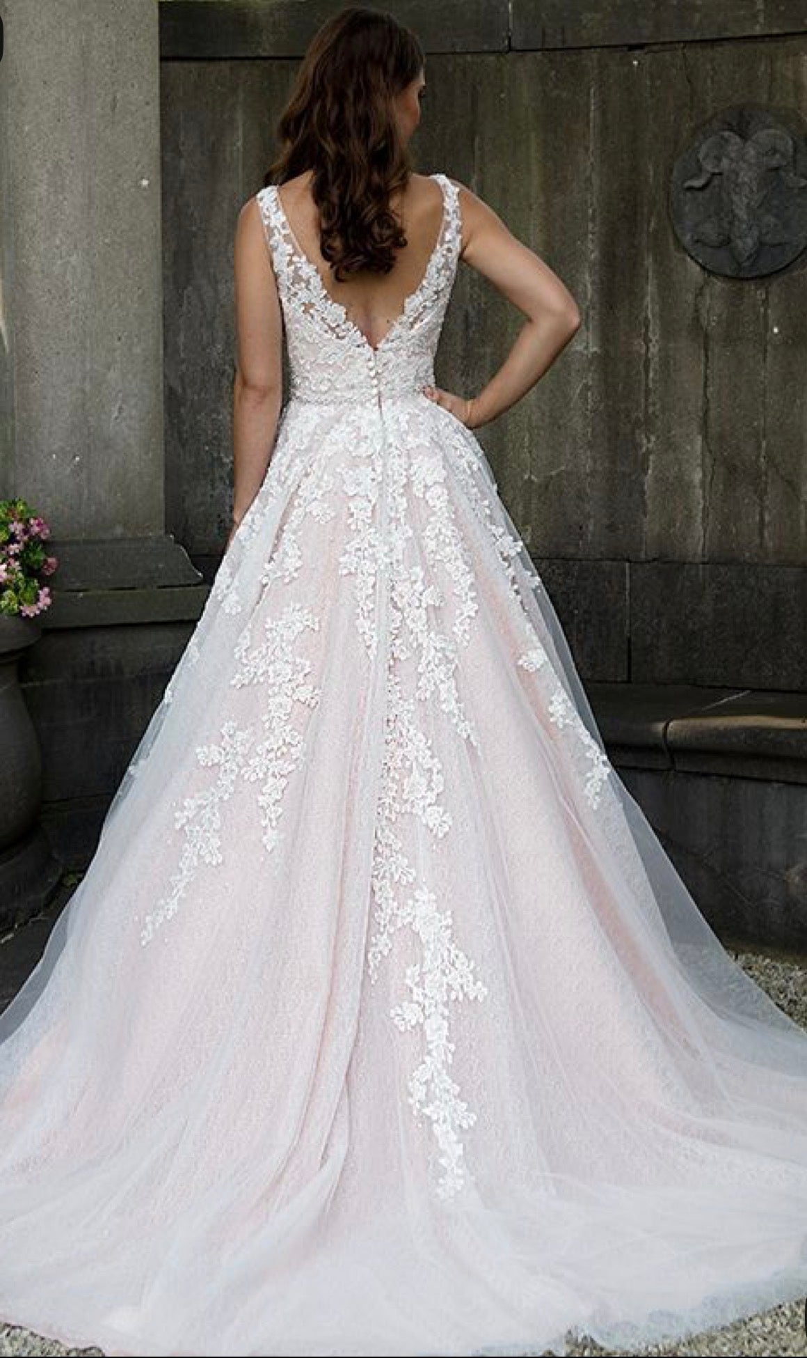 All gowns are authentic designer and private label gowns. While we do our best to take good care for our sample gowns, please note that normal wear & tear is expected. These are in-store samples that have been tried on in-store by brides, but have never been used, worn or altered in any way. Minor fixes and/or cleaning may be expected, however, any major damage will be explicitly stated in the item’s description. If you have any questions prior to purchasing, please reach out to us directly.