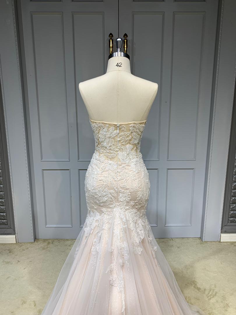 Please note that bridal sizes run small. Your bridal size will usually be several sizes larger than your typical street size, depending on the designer. Please measure yourself and compare it to the designer’s size chart before placing an order. If you are in between sizes, always size up, as you can typically alter a wedding gown 1-2 sizes down in alterations without any structural changes to the gown. Just like any formalwear, alterations are typically necessary for the dress to fit like a glove.