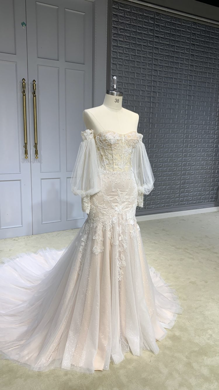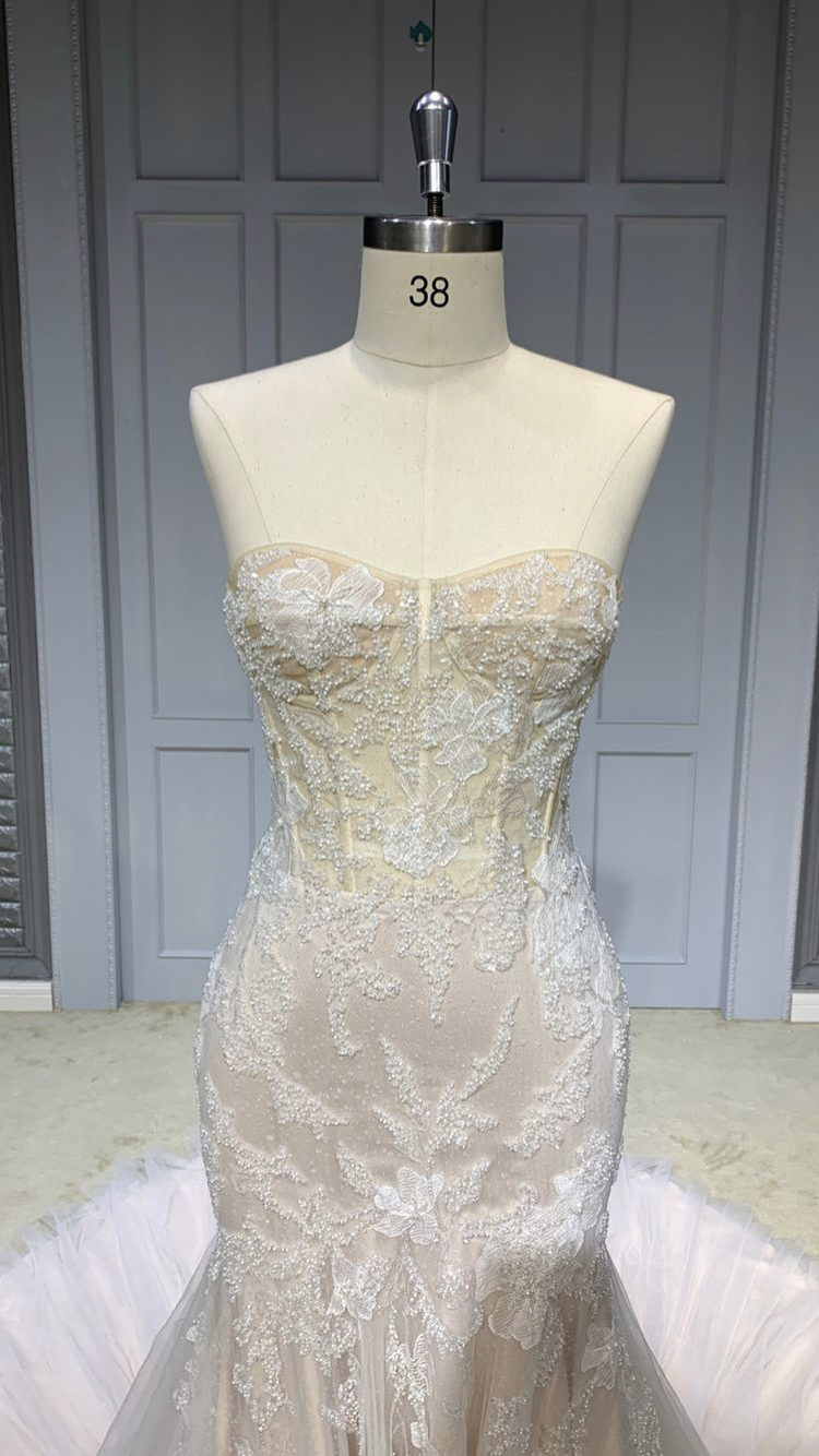 All gowns are authentic designer and private label gowns. While we do our best to take good care for our sample gowns, please note that normal wear & tear is expected. These are in-store samples that have been tried on in-store by brides, but have never been used, worn or altered in any way. Minor fixes and/or cleaning may be expected, however, any major damage will be explicitly stated in the item’s description. If you have any questions prior to purchasing, please reach out to us directly.
