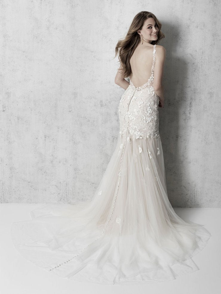 All gowns are authentic designer and private label gowns. While we do our best to take good care for our sample gowns, please note that normal wear & tear is expected. These are in-store samples that have been tried on in-store by brides, but have never been used, worn or altered in any way. Minor fixes and/or cleaning may be expected, however, any major damage will be explicitly stated in the item’s description. If you have any questions prior to purchasing, please reach out to us directly.