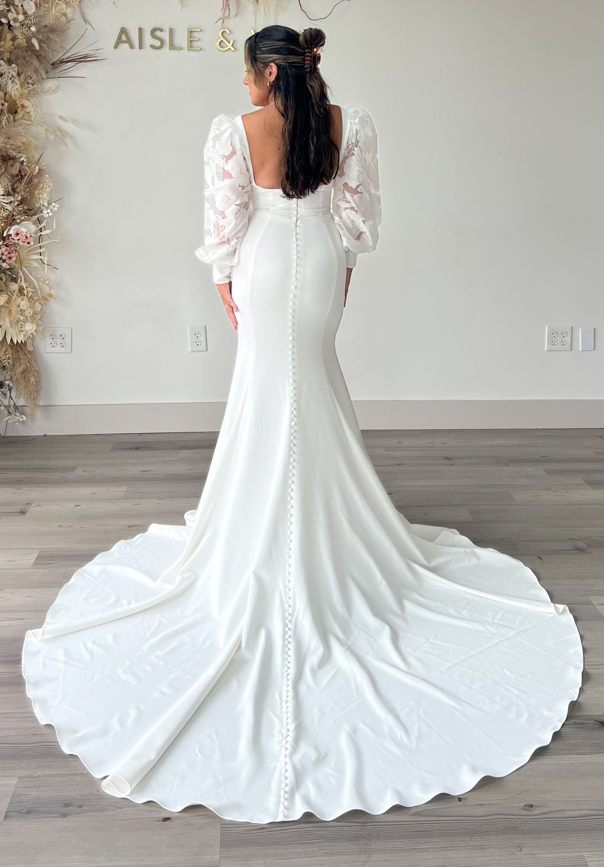 All gowns are authentic designer and private label gowns. While we do our best to take good care for our sample gowns, please note that normal wear & tear is expected. These are in-store samples that have been tried on in-store by brides, but have never been used, worn or altered in any way. Minor fixes and/or cleaning may be expected, however, any major damage will be explicitly stated in the item’s description. If you have any questions prior to purchasing, please reach out to us directly.