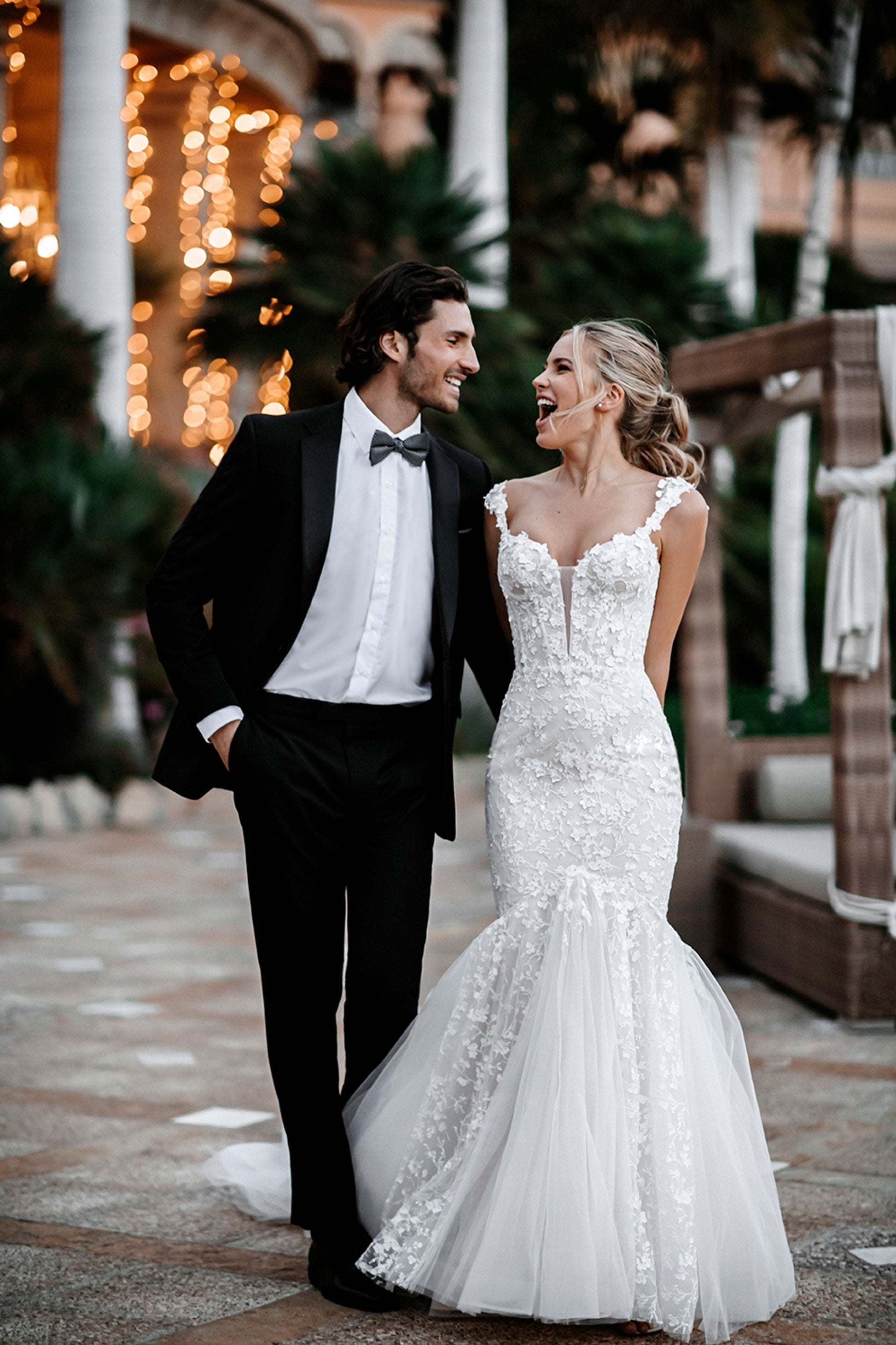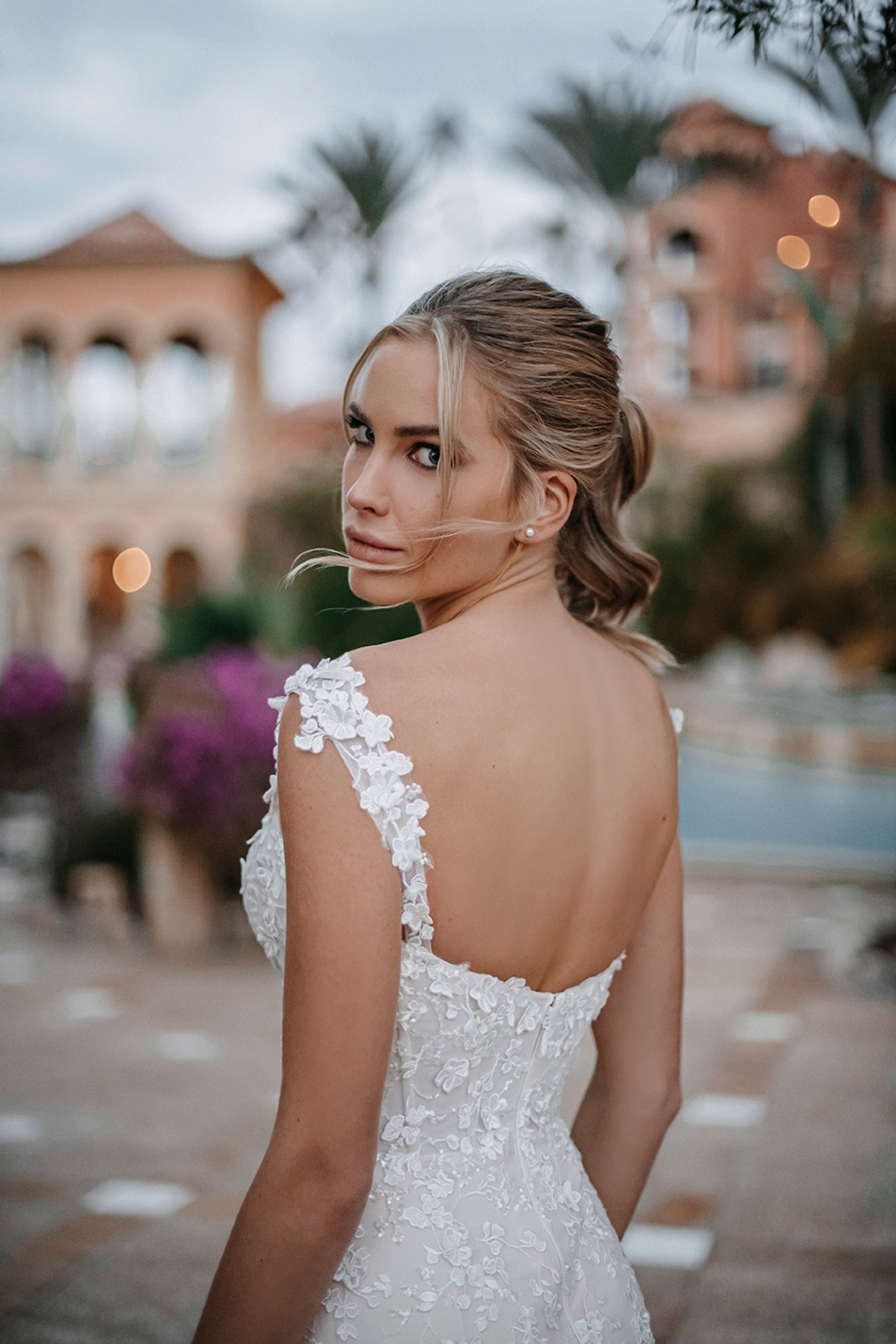 Please note that bridal sizes run small. Your bridal size will usually be several sizes larger than your typical street size, depending on the designer. Please measure yourself and compare it to the designer’s size chart before placing an order. If you are in between sizes, always size up, as you can typically alter a wedding gown 1-2 sizes down in alterations without any structural changes to the gown. Just like any formalwear, alterations are typically necessary for the dress to fit like a glove.