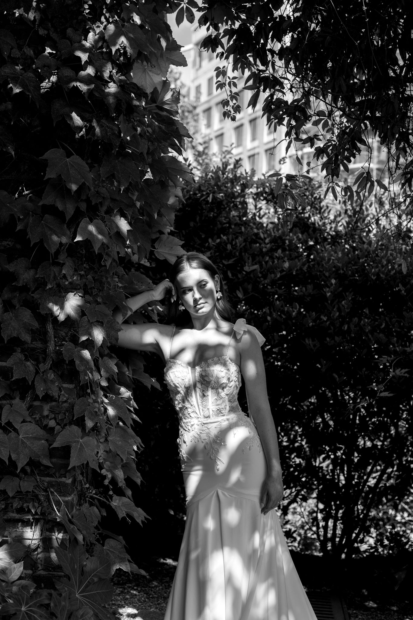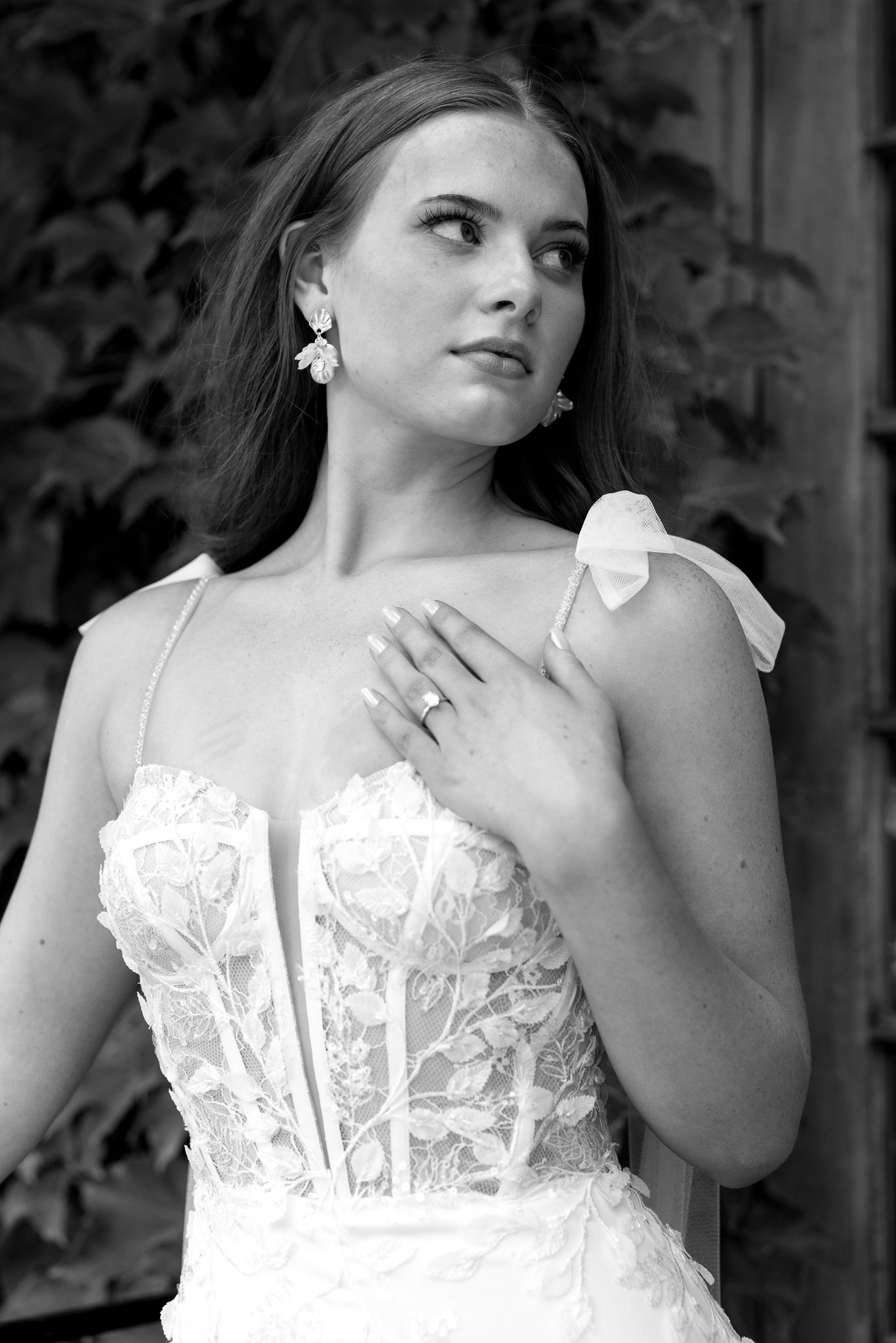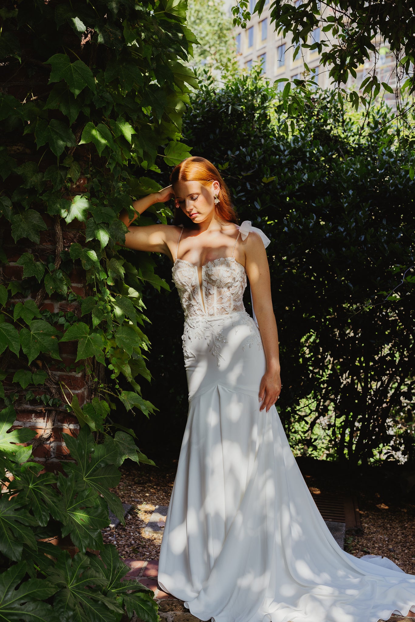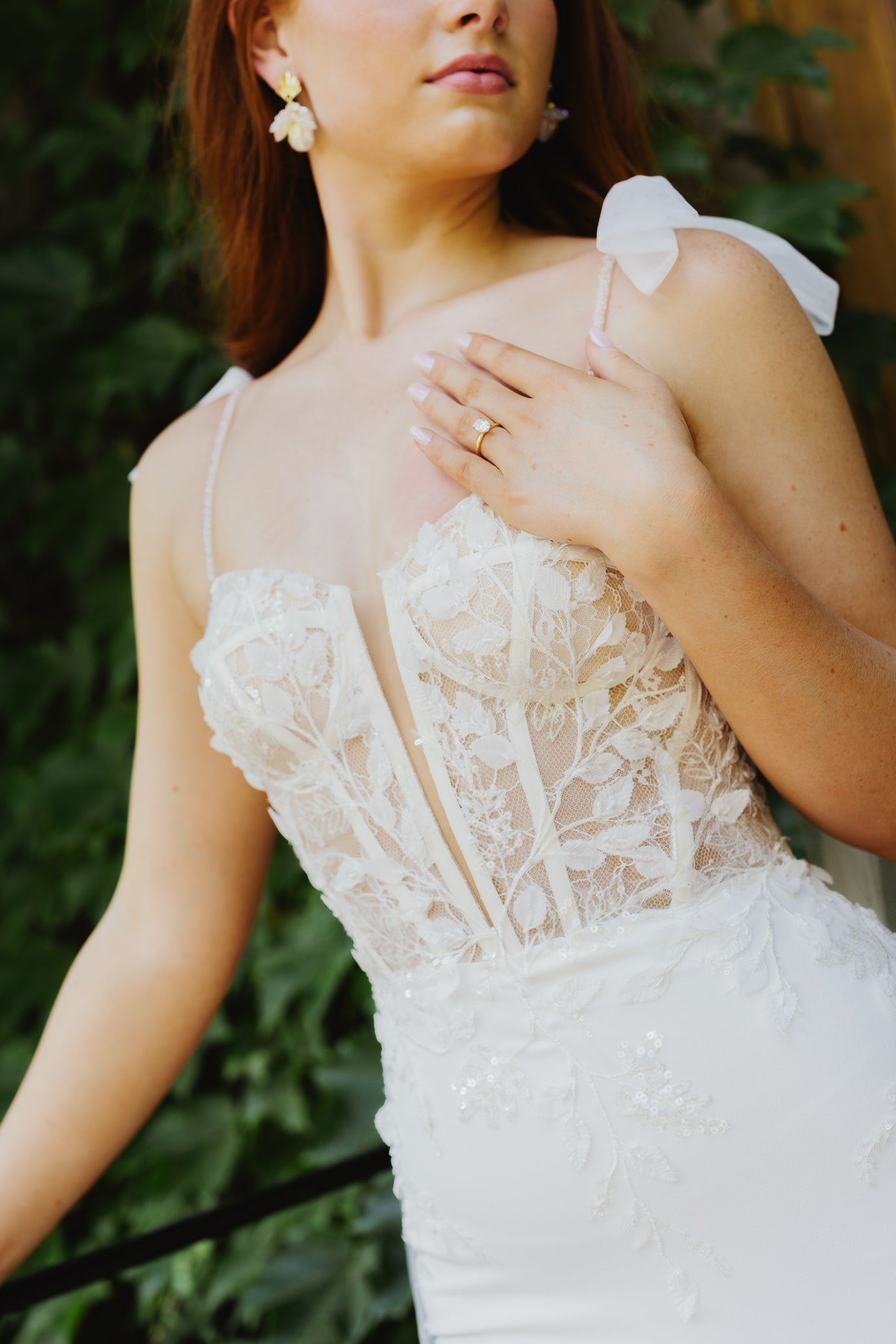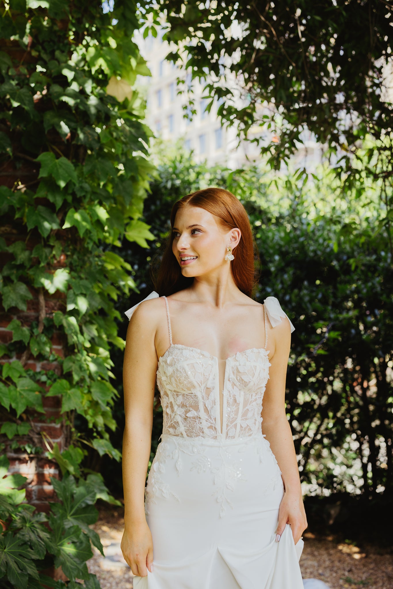 Please note that bridal sizes run small. Your bridal size will usually be several sizes larger than your typical street size, depending on the designer. Please measure yourself and compare it to the designer’s size chart before placing an order. If you are in between sizes, always size up, as you can typically alter a wedding gown 1-2 sizes down in alterations without any structural changes to the gown. Just like any formalwear, alterations are typically necessary for the dress to fit like a glove.