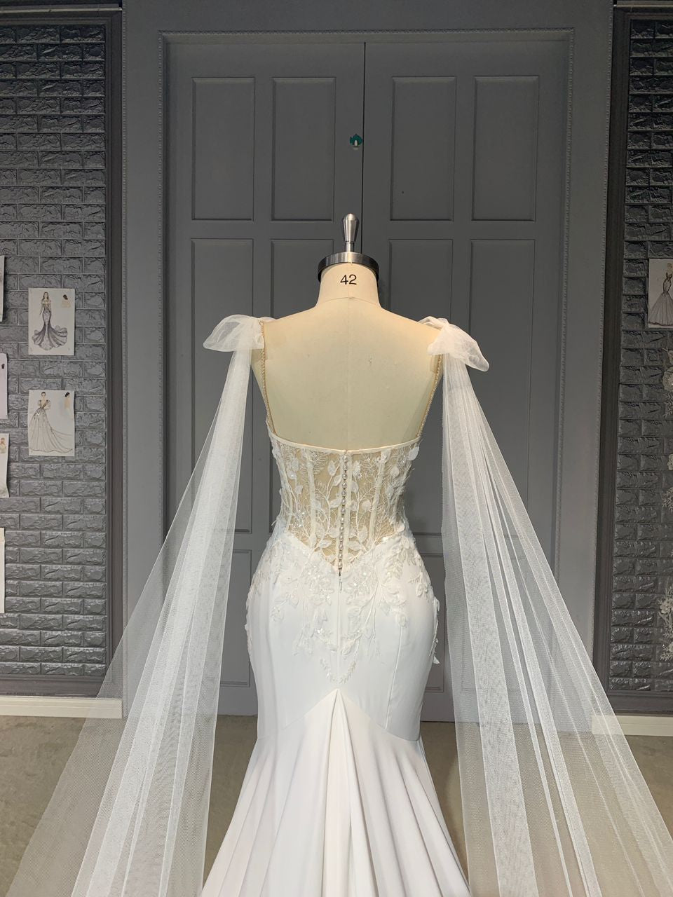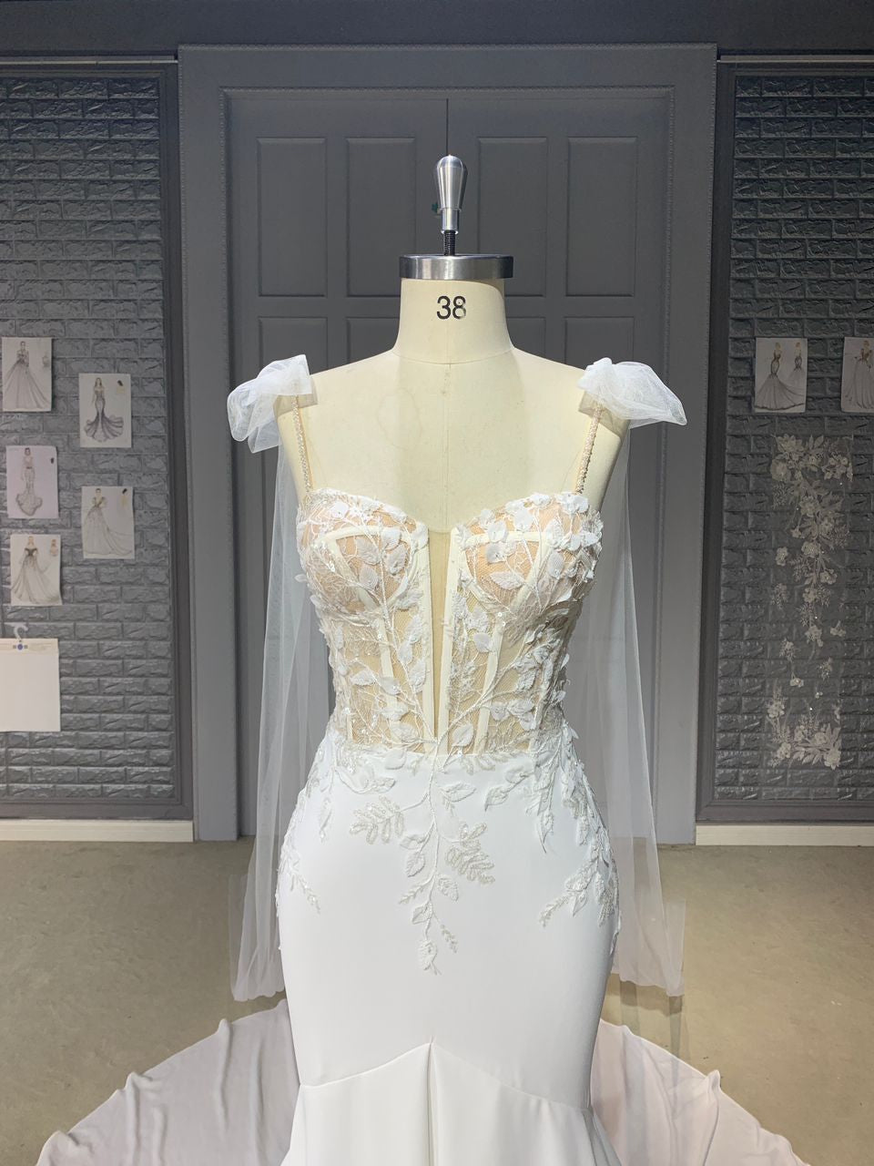 All gowns are authentic designer and private label gowns. While we do our best to take good care for our sample gowns, please note that normal wear & tear is expected. These are in-store samples that have been tried on in-store by brides, but have never been used, worn or altered in any way. Minor fixes and/or cleaning may be expected, however, any major damage will be explicitly stated in the item’s description. If you have any questions prior to purchasing, please reach out to us directly.